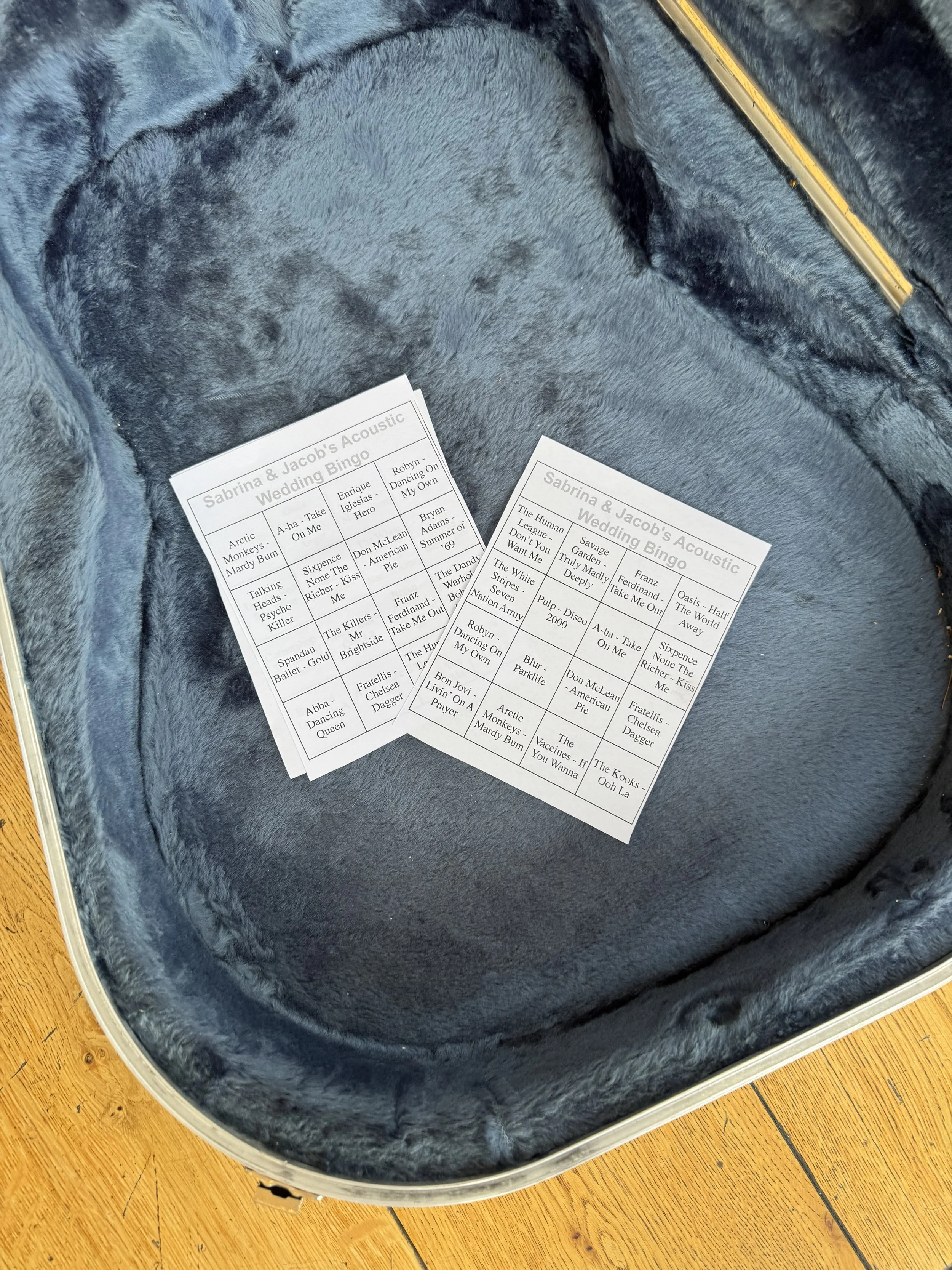 Perfect for a wedding with a lively, laid-back vibe. Take your card, sing along, and let’s make some memories with a few prizes along the way.
